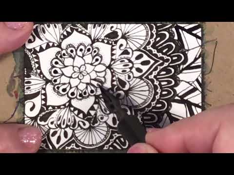 I did not sketch this ATC before beginning. My conscious usually has a plan to start with, but often my subconscious takes the mandala flower in a different direction…